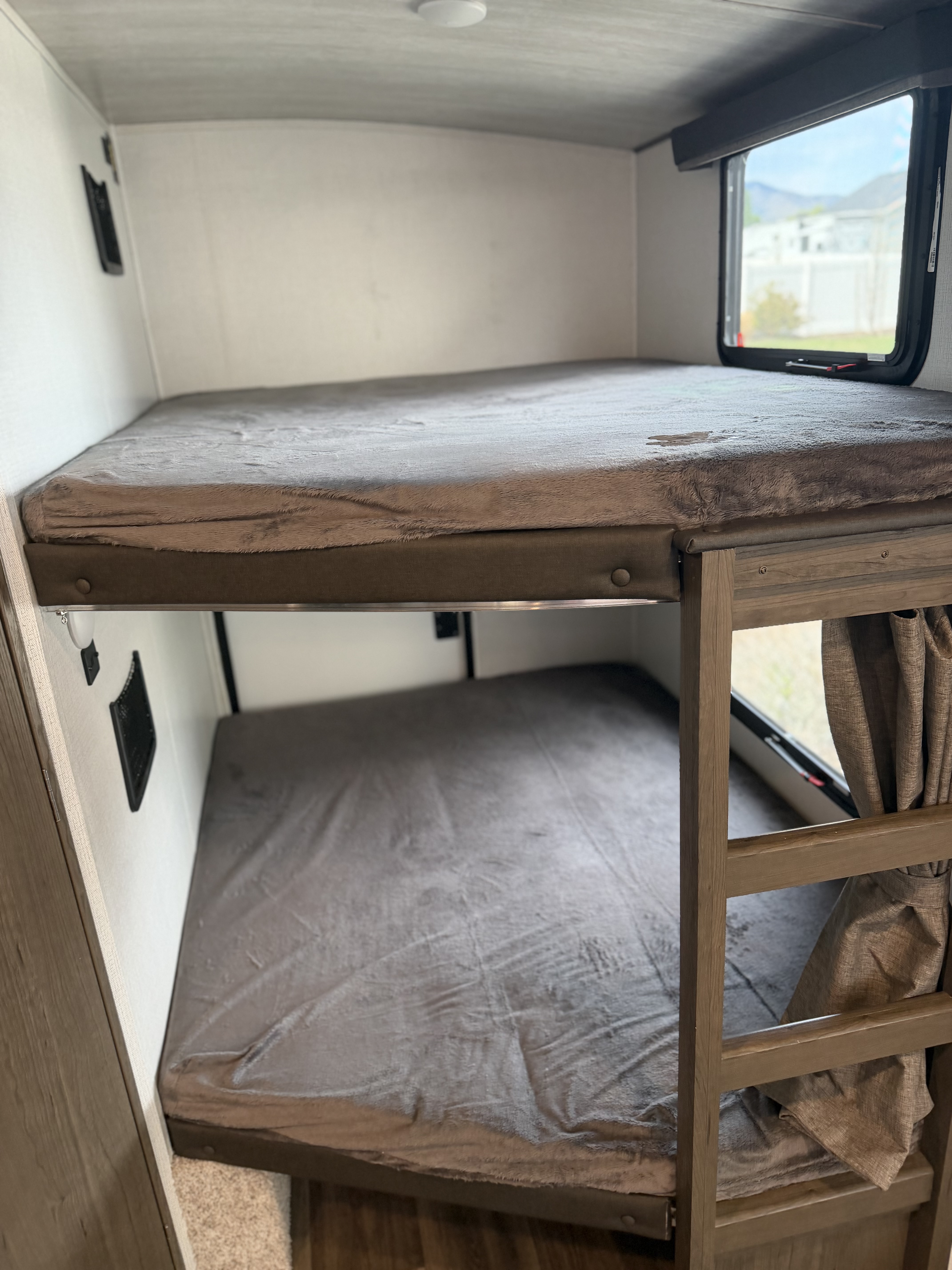 Stay comfortable no matter the Utah weather with AC and a propane furnace. We've got you covered with an electric water pump and propane hot water heater. Jam out to your favorite tunes with the AM/FM stereo featuring Bluetooth. Plus, a fridge, stove top, and microwave for easy meal prep on the go.